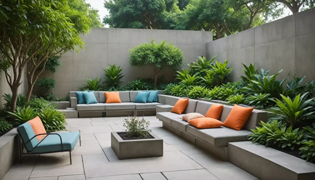 Połączenie murków oporowych z podestami drewnianymi lub kompozytowymi tworzy wygodne tarasy o zróżnicowanych poziomach, a zintegrowane donice z bloczków pozwalają wprowadzić rośliny na różnych wysokościach. Oświetlenie liniowe w czapach lub oprawy punktowe w licu muru podkreślą strukturę betonu i zapewnią bezpieczeństwo po zmroku.